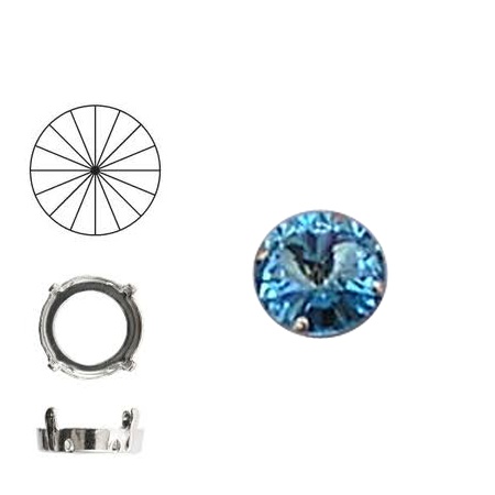 Swarovski. Rivoli. Aqua. 14mm. Steen in kastje. Dubbel gaats.