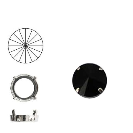 Swarovski. Rivoli. Jet. 14mm. Steen in kastje. Dubbel gaats.