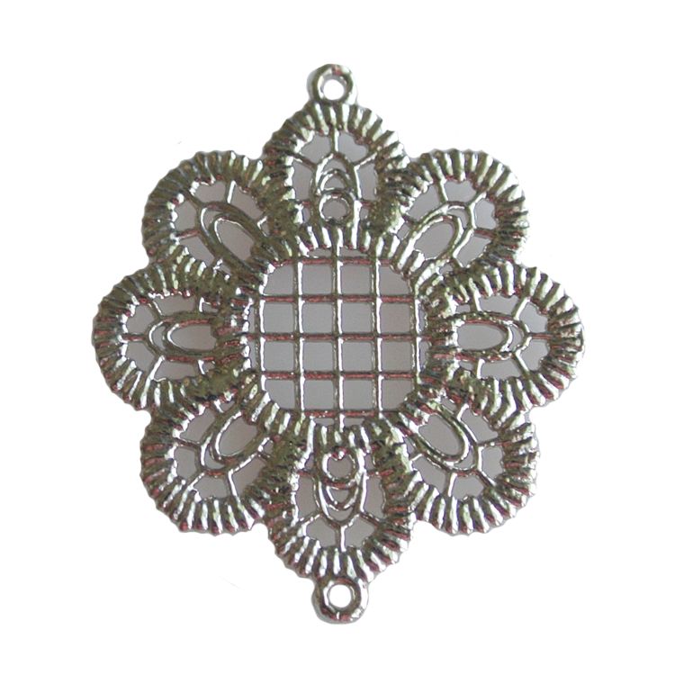 Tussenstuk Bloem Kantmotief. 2 oogjes. 25x28mm. Zilverkleurig hoogwaardige kwaliteit en licht van gewicht.