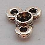 Tussenzetsel. 9x11mm. 3 ogen. voor Swarovski simillisteen 4mm. Zilverkleurig