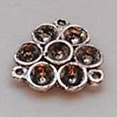 Tussenzetsel Bloem. 18mm. 3 ogen. voor 7x 4mm. Swarovski Simillisteentjes. Zilverkleurig