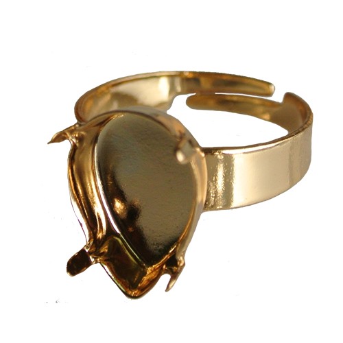 Verstelbare Ring. Goudkleurig voor Swarovskidruppel 14x10mm