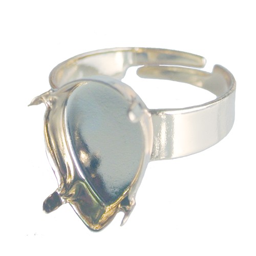 Verstelbare Ring. Lichtzilverkleurig voor Swarovskidruppel 14x10mm
