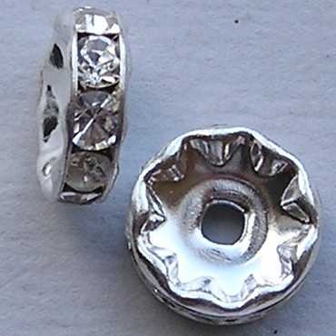 Zilverkleurige Rondelle. 10mm. Crystal.